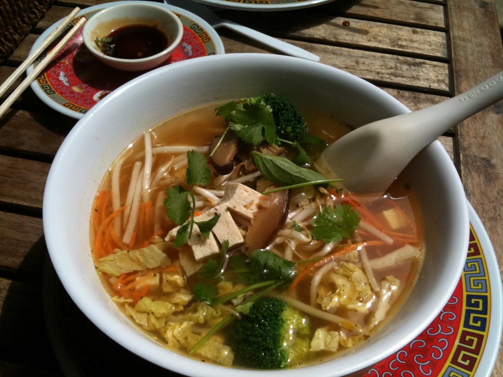 I sauteed the Broccoli, Portabella Mushrooms, Carrots, and Rutabaga with some olive oil, salt, and pepper. I then put the cooked and seasoned veggies, along with some rice noodles in veggie Pho broth. I love pho and its really not too difficult to make your own broth, but this time I just got it from the store. Garnish with bean sprouts, cilantro, basil, jalapeno, lime, and whatever else you want.